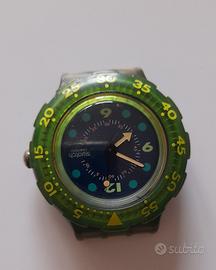 Swatch Blue Moon solo quadrante usato funzionante, provato a cambiare la batteria e funziona. Qualche graffio sul vetro, il vano batteria è danneggiato come da foto e non so se si può richiudere.