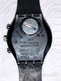 Vendo orologio Swatch Chrono Black Friday (referenza scb 100) del 1990. Cinturino waffle. Bellissimo nuovo mai usato. Da collezione. Scatola e foglio assenti, andati persi (prezzo abbassato per l'appunto). Aperto solo per esposizione. Impercettibili graffietti. Per informazioni contattatemi, spedizione carico acquirente.
