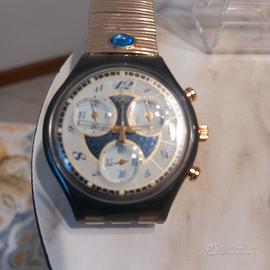 Bellissimo orologio Swatch Cronografo " Volupte" 1994 limited.Cinturino a molla. colore dorato, sfondo bianco e nr.2 pietre azzurre sul cinturino.