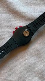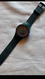 Swatch crono colore grigio antracite con indicatori fucsia. Indossato raramente è perfettamente funzionante. Purtroppo non ho piu la sua confezione originale. Verra inviato senza batteria. Formula visto e piaciuto, non accetto resi.