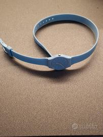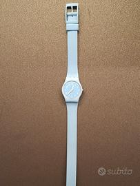 Swatch con cinturino doppio giro. cassa in plastica e cinturino in silicone. Quadrante cassa e cinturino azzurro blu chiaro. movimento al quarzo.