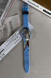 Swatch Fleche d'Amour serie speciale SWATCH x LOUVRE . Anno 2020 - Orologio mai usato completo di custodia, garanzia e scontrino. - Il disegno rappresenta un dettaglio del dipinto "Ratto di Elena" del pittore italiano Guido Reni. Cupido indica il datario a forma di cuore e il 5 sembra tatuato sulla parte superiore del braccio. Le lancette dei minuti e delle ore sono dorate in contrasto con la lancetta dei secondi in rosso - cassa in plastica e movimento al quarzo a batteria, resistente all'acqua.