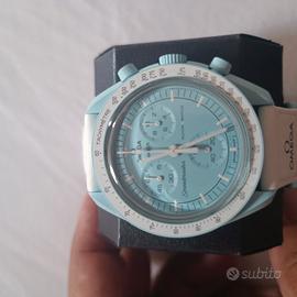 vendo Swatch for Omega originale (modello Mission to Uranus) ....modello sicuramente femminile.....comprato presso negozio ufficiale Swatch in Germania.... regalo per mia figlia..non apprezzato ....e pertanto lo rivendo con fotocopia dello scontrino che vale da garanzia. stesso prezzo di acquisto ovvero 280 euro più spese di spedizione a carico dell' acquirente. MAI INDOSSATO.....(sul mercato parallelo stesso orologio venduto a circa 400 Euro)