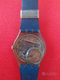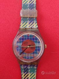Per collezionisti e amanti del vintage anni '90, vendo l'originale Swatch Gent modello "TAILLEUR" (codice GM109), prodotto nel 1992. Un orologio che incarna perfettamente l'estetica geometrica e colorata del periodo, con un quadrante unico che gioca su tonalità di blu scuro, viola, fucsia e giallo. Il cinturino originale è decorato con grafiche astratte a quadri e linee colorate che lo rendono un accessorio pop inconfondibile. DETTAGLI: Modello: Swatch Gent TAILLEUR (GM109). Anno: 1992. Cassa: In plastica trasparente/scura. Stile: Geometrico / Anni '90 / Collezionismo. Condizioni estetiche: Molto buone, i colori sono ancora vividi e il cinturino è integro e flessibile come visibile in foto. NOTA SUL FUNZIONAMENTO: L'orologio fa parte di una collezione privata ed è fermo da anni. NON È STATO TESTATO con una pila nuova, quindi viene venduto con la formula "visto e piaciuto" nello stato in cui si trova, senza garanzia di funzionamento. Ottimo come pezzo da esposizione o per chi vuole provare a ripristinarlo.Manca il coperchio copri pilla.