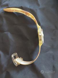 L’orologio funziona perfettamente. Il cinturino è quello originale e vicino ai forellini della fibia è un po’ screpolato,