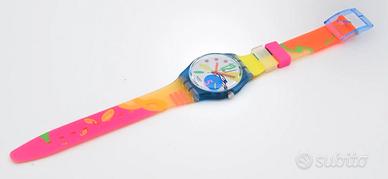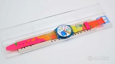 Orologio Vintage anni 90 - Swatch RARO da collezione Orologio proveniente da collezione privata Orologio mai indossato, completo di scatola e documentazione originale NESSUN GRAFFIO Introvabile in queste condizioni A tutela dell'acquirente, si fa presente che prima della spedizione l'orologio sarà sottoposto ad attenta ispezione e dotato di nuova batteria per garantirne il perfetto funzionamento (Osservazione generale valida su tutti gli orologi Swatch Vintage: gli orologi Swatch che vendo provengono da collezioni private e qui presentati anche come oggetti da collezione. Gli orologi sono stati acquistati nuovi negli anni '80 e '90 e mai indossati. Dopo l'acquisto gli orologi sono stati conservati fino ad ora in ambiente idoneo. Dopo 25~35 anni sia i cinturini in plastica che quelli in pelle potrebbero essersi asciugati e diventare troppo fragili per poter essere indossati. Indossarli può essere un rischio in quanto non è possibile garantire la durata del cinturino qualora lo si utilizza)