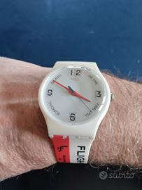 Condizioni ottime. Quadrante senza graffi, cassa integra in ogni sua parte. Cinturino non scolorito né ingiallito, non secco né appiccicoso, senza crepe, flessibile ed indossabile. Condizioni scatola, danneggiata sul retro, ma che chiude regolarmente.
