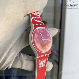 Per conoscere il prezzo e le caratteristiche tecniche dei nostri orologi visita il nostro sito ufficiale: https://lwmitalia.com/it Tutti i nostri orologi vengono verificati e revisionati dal nostro laboratorio specializzato “KeepTime Lab”: https://keeptimelab.com/it/ Swatch Poppy Field GW705ES “Mantova Capitale della Cultura”, anno di produzione 2016, vetro plastica bombato, quadrante Day-Date colore rosso con indici arabi, movimento al quarzo a batteria, cinturino in gomma colore rosso e bianco con disegno di monumenti famosi della Basilica di Sant'Andrea, la Torre della Gabbia e la Lanterna della città di Mantova. Orologio originale Swatch in ogni sua parte, molto raro, edizione limitata di soli 999 esemplari, prodotto da Swatch come tributo a Mantova, nominata Capitale Italiana della Cultura 2016, mai indossato, nuovo e senza segni di usura, full set (scatola, accessori vari, garanzia ufficiale Swatch), garanzia/dichiarazione di vendita nostro negozio valida per 12 mesi.