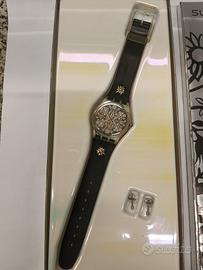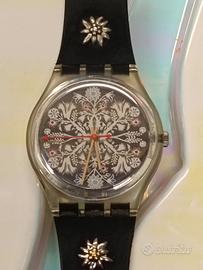Swatch GZ105 Bergstrussli natale 1987, usato ma in ottime condizioni (pezzo cinturino inferiore nuovo), completo dei suoi orecchini, della sua scatola e della sua garanzia.