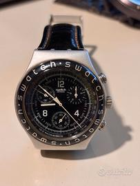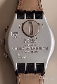 Swatch IRONY Aluminium anni 90 - Modello: “Chrono High Tail” (YCS1000) Cinturino pelle nera. Batteria scarica.