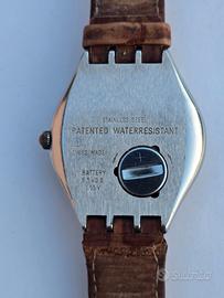Orologio Swatch Irony vintage svizzero del 1993 Risalente al 1993, questo orologio vintage svizzero Swatch Irony si è conservato in buone condizioni. Il modello Swatch BACKWARD YGS401 è dotato di un preciso movimento al quarzo svizzero che garantisce una precisione impeccabile. Osservando attentamente il quadrante, noterete che alcuni indici delle ore sono invertiti, creando un effetto specchio. Proprio come suggerisce il nome dell'orologio: Swatch BACKWARD . Dettagli del prodotto: Materiale della cassa: acciaio inossidabile Materiale del cinturino: pelle Movimento: quarzo Impermeabilità: 3 bar Funzioni: data Diametro della cassa: 38 mm Linea di prodotti: Irony Famiglia di prodotti: Big Anno: 1993-1994 Referenza: YGS401 L'orologio è funzionante. SWATCH IRONY BACKWARD BIG YGS401 AG 1993 VINTAGE Condizioni come da foto Venduto completo di batteria senza custodia Questo è un orologio vintage e deve essere considerato come oggetto da collezione, venduto come "visto, piaciuto ("as is")