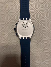 Orologio Swatch Irony Chrono originale, colore blu con dettagli arancioni. Nuovo, mai usato, ricevuto come regalo di comunione e rimasto sempre inutilizzato. Stile sportivo ed elegante, cassa in metallo, cronografo al quarzo e cinturino in silicone blu comodo e resistente. Condizioni pari al nuovo, come visibile in foto. Ideale come regalo o per collezionisti Swatch. #swatch #swatchirony #chronograph #orologionuovo #regalo #orologio #orologiosportivo #quarzo #accessoriuomo #blu