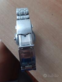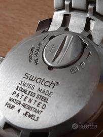 Orologio cronografo uomo di Swatch Irony Retrograde Dark Steel YRS400G Orologio cronografo da uomo di Swatch della collezione Irony Retrograde Dark Steel.Cassa in acciaio satinato e lucido del diametro di 41,5 mm, quadrante blu e indici bianchi e silver, sfere silver, cinturino in acciaio, chiusura di sicurezza in acciaio. Resistenza all'acqua 3 bar. Movimento al quarzo Swiss Made. ATTENZIONE Vetro: lievemente graffiato (segni del tempo, ma nulla che ne comprometta la leggibilità)