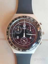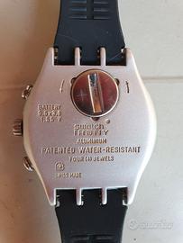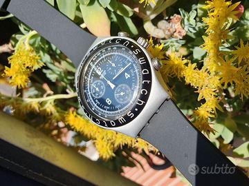 Vendo uno Swatch Irony Aluminium Chrono, modello 'High Tail' (referenza YCS4000). Del 1996. Presente batteria nuova. Funziona benissimo, tutti i tasti ed i cronografi sono funzionanti. Cassa in ottimo stato. Vetro plexiglass perfetto, nessun micro segno. Cinturino nuovo (mai indossato) in gomma colore nero. A disposizione per ulteriori informazioni. Le foto sono parte integrante della descrizione.