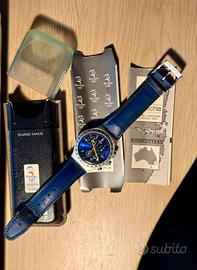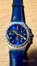 Rarissimo Swatch Irony Chrono creato in occasione delle olimpiadi Sydney del 2000, completo di tutto e con il suo cinturino originale. L’orologio è usato come in foto e si vende funzionante ma con la batteria da sostituire. Pezzo da collezione poiche completo. Prezzo non trattabile.