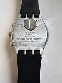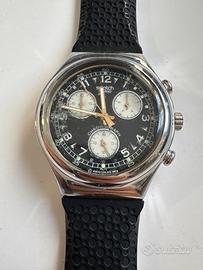 Vendo bellissimo swatch irony con cronografo completamente funzionante e con pile, vetro graffiato come da foto, cassa in ottimo stato. Cinturino originale swatch in ottimo stato se non per quella parte rovinata come da foto. Nel caso foste interessati a piu’ orologi contattatemi e vedremo se riusciremo a trovare un accordo. Vendo collezione privata avviata e terminata per cambio di idea. No scatola e corredo. Spedizione a carico dell’acquirente.