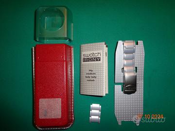 Cedo per inutilizzo due orologi SWATCH serie IRONY, nel loro astuccio originale, corredati di certificato di garanzia con istruzioni per l'uso e scontrino di acquisto (2004/2005). All'orologio con cinturino metallico furono rimosse tre maglie (disponibili) per adattarlo alle misure richieste. Le pile sono da sostituire. Condizioni generali perfette, mai indossati, se non per prova in negozio. Il prezzo di vendita è di € 30,00 ciascuno. Per chi fosse interessato a ritirarli entrambi il prezzo è di € 50,00. Non spedisco, solo consegna a mano.