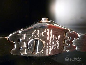 Vendo orologio Swatch Irony quartz, donna , alimentazione a batteria Display Analogico Funzioni Solo tempo Impermeabilita' 03 atm water resistant Materiale cassa Acciaio Colore cassa argento colore quadrante rosa con inserti brillantini colore rosa nel cinturino. Spese spedizione incluse