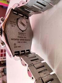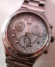 Orologio da polso Swatch in acciaio inossidabile, modello YCS400 Rough And Rugged IRONY Chrono, resistente all'acqua fino a 3 bar, prodotto nel 1995. Segni di usura legati all'utilizzo, cristallo leggermente crepato nella parte inferiore. no scatola, no documentazione.