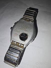 Orologio Swatch Irony Scuba del 1997, un pezzo da collezione. Questo modello unisce la cassa in alluminio spazzolato della linea Irony con le caratteristiche di resistenza all'acqua.