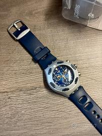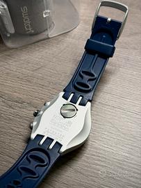 Orologio Swatch Irony Scuba Chrono 200 con cinturino blu.