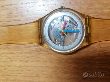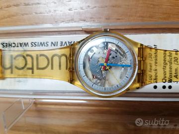 Da mia collezione cedo Swatch "Jelly Fish" - GK 100, anno'88. Nuovo, mai usato ne indossato. Quadrante trasparente con movimento a vista e lancette colorate tipiche del modello. La cassa e il cinturino presentano il normale ingiallimento dovuto al tempo, pur essendo quasi sempre stato in un cassetto dopo alcuni anni dall' acquisto. Prezzo quindi adeguato alle condizioni. Perfettamente funzionante, consegno con batteria nuova sigillata.