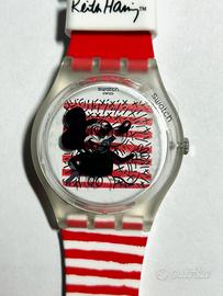 Orologio Swatch × Keith Haring × Disney "Mouse Marinière" GZ352, lanciato nel 2021 come parte della serie di collaborazioni artistiche in edizione limitata di Swatch.