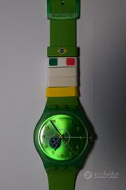 Orologio Swatch edizione Brazil World Cup 2014, indossato di raro, ottime condizioni, senza scatola, passante con bandiera italiana e brasiliana N.B. Espongo prezzi internet come paragone di vendita sul mercato