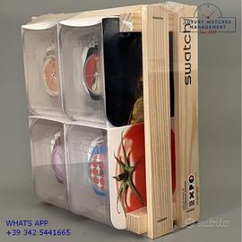 Orologi Swatch originali in ogni sua parte, speciale confezione "food" prodotta in edizione limitata di soli 500 esemplari, mai indossati ancora sigillati nella loro esclusiva confezione, in condizioni come nuovo, segni di usura assenti o appena visibili, perfettamente funzionanti, full set (scatola, accessori vari, garanzia ufficiale Swatch dell’epoca).