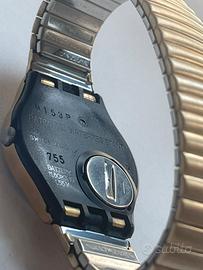 Swatch Courier GX703 – Large Oro Giallo (NOS Vintage 1988) Orologio Swatch vintage NOS (New Old Stock), mai indossato, modello Courier GX703 Large con cassa e bracciale in acciaio dorato (oro giallo). Movimento quarzo Swiss Made, perfettamente funzionante. Caratteristiche principali: •Quadrante classico con numeri romani •Funzione giorno/data •Cassa e bracciale in acciaio dorato originale •Resistente all’acqua fino a 30m Condizioni: come nuovo, mai indossato, segni d’uso assenti. Perfetto per collezionisti o chi cerca un elegante orologio vintage da indossare quotidianamente.
