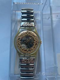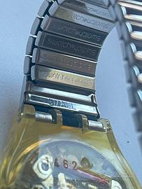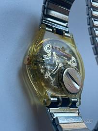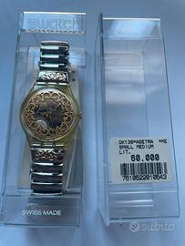 Swatch Gent Flex “ASETRA” ref. GK137 / GK138 originale del 1991, in condizioni NUOVO (NOS – New Old Stock), mai indossato. Modello vintage anni ’90 dal design elegante e distintivo, con quadrante dalle tonalità raffinate e cassa trasparente tipica degli Swatch dell’epoca. Linee pulite e stile intramontabile, molto apprezzato dai collezionisti. Dotato di raro cinturino flex metallico regolabile, comodo e resistente, più ricercato rispetto ai classici cinturini in plastica. Caratteristiche: - Movimento al quarzo Swiss Made - Diametro cassa circa 34 mm - Impermeabile 3 bar - Modello unisex - Due misure disponibili: • GK137 = Large • GK138 = Small Condizioni impeccabili: - Mai indossato - Conservato con cura - Nessun segno di utilizzo - (eventuale: completo di scatola e documenti originali se presenti) Orologio vintage originale Swatch, sempre più difficile da trovare in stato NOS. Ideale sia per collezionisti che per utilizzo quotidiano. Spedizione veloce e imballo accurato.