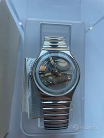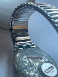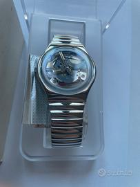 Swatch Gent “STEELTECH” ref. GY100, orologio originale Swiss Made, in condizioni NUOVO (NOS – New Old Stock), mai indossato. Modello iconico anni ’90 dal design robusto e moderno, con quadrante scuro e dettagli metallici che gli conferiscono un look elegante e tecnico. Cassa resistente in plastica con finiture metalliche tipiche della serie SteelTech. Dotato di raro cinturino flex metallico regolabile, molto più ricercato rispetto ai classici cinturini in plastica, comodo e resistente. Caratteristiche: - Movimento al quarzo Swiss Made - Diametro cassa circa 34 mm - Impermeabile 3 bar - Modello unisex Condizioni impeccabili: - Mai indossato - Conservato con cura - Nessun segno di utilizzo - (eventuale: completo di scatola e documenti originali se presenti) Orologio vintage originale Swatch, sempre più difficile da trovare in stato NOS. Perfetto per collezionisti o per chi cerca un pezzo autentico anni ’90. Spedizione veloce e imballo accurato.