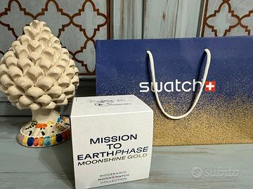 Orologio nuovo e mai utilizzato ,con scontrino dacquisto presso centro swatch 01/2026! Moonswatch in vendita in alcuni negozi swatch,soltanto quando nevica in Svizzera,con inserti moonphase in oro ! MISSIKN TO EARTHPHASE MOONSHINE GOLD