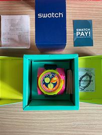 L'orologio è stato acquistato presso lo Swatch store di via Calzaiuoli 94/96 di Firenze a settembre del 2023. Corredo completo di scatola, garanzia e scontrino d'acquisto. Usato ma in ottime condizioni, presenta alcuni graffi da normale utilizzo sul vetro ma visibili in controluce. Possibilità di ritiro di persona dell'orologio su Milano.
