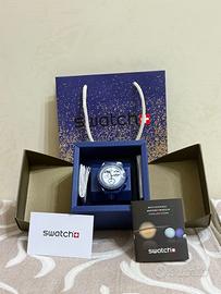 Orologio iconico della collezione MoonSwatch, ispirato allo Speedmaster Moonwatch Omega. Modello molto richiesto e spesso sold out.