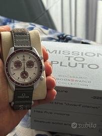 Vendo Swatch × Omega MoonSwatch “Mission to Pluto” (SO33M101). Usato con grande cura, in condizioni eccellenti — come puoi vedere dalle foto: cassa e cinturino senza segni evidenti.