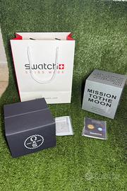 Vendo Swatch × Omega MoonSwatch “Mission to the Moon”, collaborazione ufficiale tra Swatch e Omega, ispirata all’iconico Speedmaster Moonwatch.