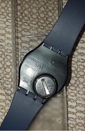 Orologio SWATCH 5755 Originale AG 1991 Vintage cassa metallo e quadrante blu con numeri romani- diametro 34 mill. – al quarzo Water Resistant Cinturino plastica blu Pila nuova- Scatola Non originale Sul retro segni di usura ma perfettamente funzionante E 34
