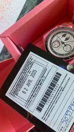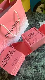 Orologio Edizione Limitata Swatch per Omega - Pink Moon acquistato nel negozio Swatch di Parigi Champs Elysee - Tutte le caratteristiche sono certamente note ai collezionisti o si possono trovare sul sito di swatch.