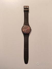 Orologio Swatch Rebel Brown & Pink originale SUOC700, colorazione Brown & Pink con indici e day‑date rosa. Cassa fumé traslucida e cinturino in silicone per un look iconico anni 2010. Usato poco, tenuto con cura: lievi segni da normale utilizzo visibili in foto.