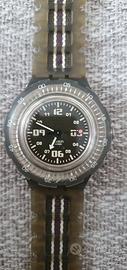 Swatch Scuba 200 Snowpass, utilizzato una volta, primi anni 2000, completo di istruzioni e scatola originale. Pila da sostituire. Gli Swatch Snowpass servivano per caricarci lo skipass per sciare e avere le mani libere ai tornelli, bastava appoggiarlo al lettore e si passava; sono stati i precursori di wirless e NFC