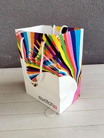 Vendo shopper bag Swatch in cartoncino plastificato. Usata in eccellenti condizioni. Misure in cm b20 h28 p13. Il venditore dichiara che il bene oggetto del presente annuncio è originale. Spedizione ordinaria 4€ Il venditore dichiara che il bene oggetto del presente annuncio è originale.