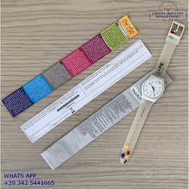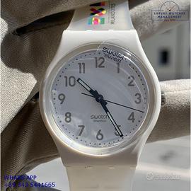 Orologio originale Swatch in ogni sua parte, edizione limitata di 2015 esemplari, realizzato in occasione dell’Expo di Milano 2015, mai indossato, nuovo e senza segni di usura, full set (scatola, accessori vari, garanzia ufficiale Swatch), garanzia/dichiarazione di vendita nostro negozio valida per 12 mesi.