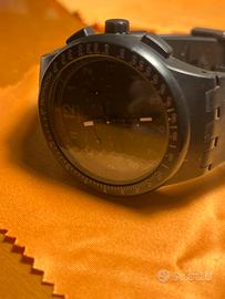 Orologio usato, con normali segni di utilizzo sulla cassa (micro-graffi superficiali compatibili con l’uso). Vetro con lievi segni, nessuna crepa o rottura. Nel complesso in buone condizioni, come da foto. Funzionamento: Orologio funzionante, cronografo operativo. Dotazione: Venduto solo l’orologio, senza scatola né documenti. Al momento dell’acquisto verrà inserita la batteria. Ideale come orologio da uso quotidiano o per appassionati Swatch. Possibile spedizione o consegna a mano. Per info o foto aggiuntive non esitate a contattarmi.