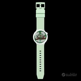 Questo orologio oversize ha cassa, lunetta, corona e fibbia BIOCERAMIC. Il quadrante trasparente con stampa multicolore presenta lancette bianche delle ore e dei minuti che si illuminano al buio e una lancetta dei secondi verde protetta da vetro biosourced. La cassa BIOCERAMIC verde chiaro opaco è contrastata da una lunetta e una corona BIOCERAMIC bianco opaco. Un cinturino verde chiaro opaco con passanti abbinati e mezza fibbia BIOCERAMIC completano questo divertente segnatempo