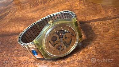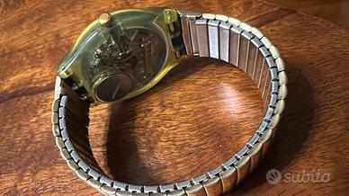 Vendo swatch vintage gn 123-124 gold smile 1991 in scatola ed imballi originali in buone condizioni ma manca roccia blu.