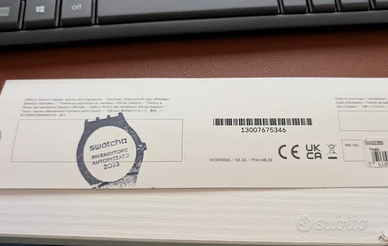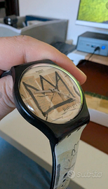 Vendo orologio Swatch x Jean-Michel Basquiat ”, edizione speciale ispirata alla famosa corona dell’artista. Cinturino e quadrante presentano la grafica originale in toni beige con corona nera centrale e firma Basquiat. Orologio al quarzo, cassa in plastica nera, misura unisex, perfetto sia da collezione sia da indossare tutti i giorni. Completo di confezione originale Swatch x Basquiat e card con timbro “Rivenditore Autorizzato 2023”; condizioni buone/usate (vedi foto per i piccoli segni sul cinturino e sul vetrino). Ideale per amanti dell’arte contemporanea, street art e collaborazioni Swatch in edizione limitata.