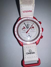 Vendo Swatch X Omega mission to Mars ORIGINALE 100%. Spedisco anche con TuttoSubito per dare possibilità di visione. Comprato qualche anno fa, usato solo qualche volta. Il cinturino un po scrurito nella parte intenta a causa del contatto con la pelle. Tutti i pezzi sono originali , scatola, libretti e scontrino fiscale.