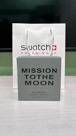 Vendo splendido Omega x Swatch MoonSwatch, modello Mission to the Moon. È l'orologio più iconico della collezione, quello che riprende fedelmente il design e i colori del leggendario Omega Speedmaster Moonwatch originale indossato dagli astronauti. L'orologio è nuovo, mai indossato, ancora con la pellicola protettiva sul quadrante (visibile in foto). L'orologio viene venduto come Full Set, comprensivo di: 1.Scatola originale integra. 2.Controscatola (Sleeve) "Mission to the Moon". 3.Manuale d'uso e libretto della collezione. 4.Sacchetto originale Swatch.