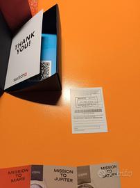 Vendo fantastico Swatch x Omega MoonSwatch Mission on Earth – Polar Lights, uno dei modelli più ricercati della collezione. L’orologio è NUOVO, mai utilizzato, completo di tutto il set originale come da negozio: ✔️ Scatola originale Swatch ✔️ Contenitore interno MoonSwatch ✔️ Libretto e documentazione ✔️ Scontrino originale (acquisto in store Swatch) ✔️ Cartellini e accessori inclusi Colore davvero spettacolare con tonalità turchese/verde acqua che richiama le aurore polari 🔥 Quadrante cronografo con dettagli curati e cinturino in velcro marchiato Omega. Perfetto sia per collezionisti che per chi vuole un orologio iconico e diverso dal solito. ⚙️ Caratteristiche: Modello: Mission on Earth – Polar Lights Collaborazione: Swatch x Omega Materiale: Bioceramic Movimento: Quarzo Funzione: Cronografo Condizioni: Nuovo (mai indossato) Completo di scontrino e packaging originale 🚚 Spedizione: Spedizione veloce in 24/48h Imballaggio accurato e sicuro Possibilità di spedizione tracciata Consegna a mano disponibile (se in zona)